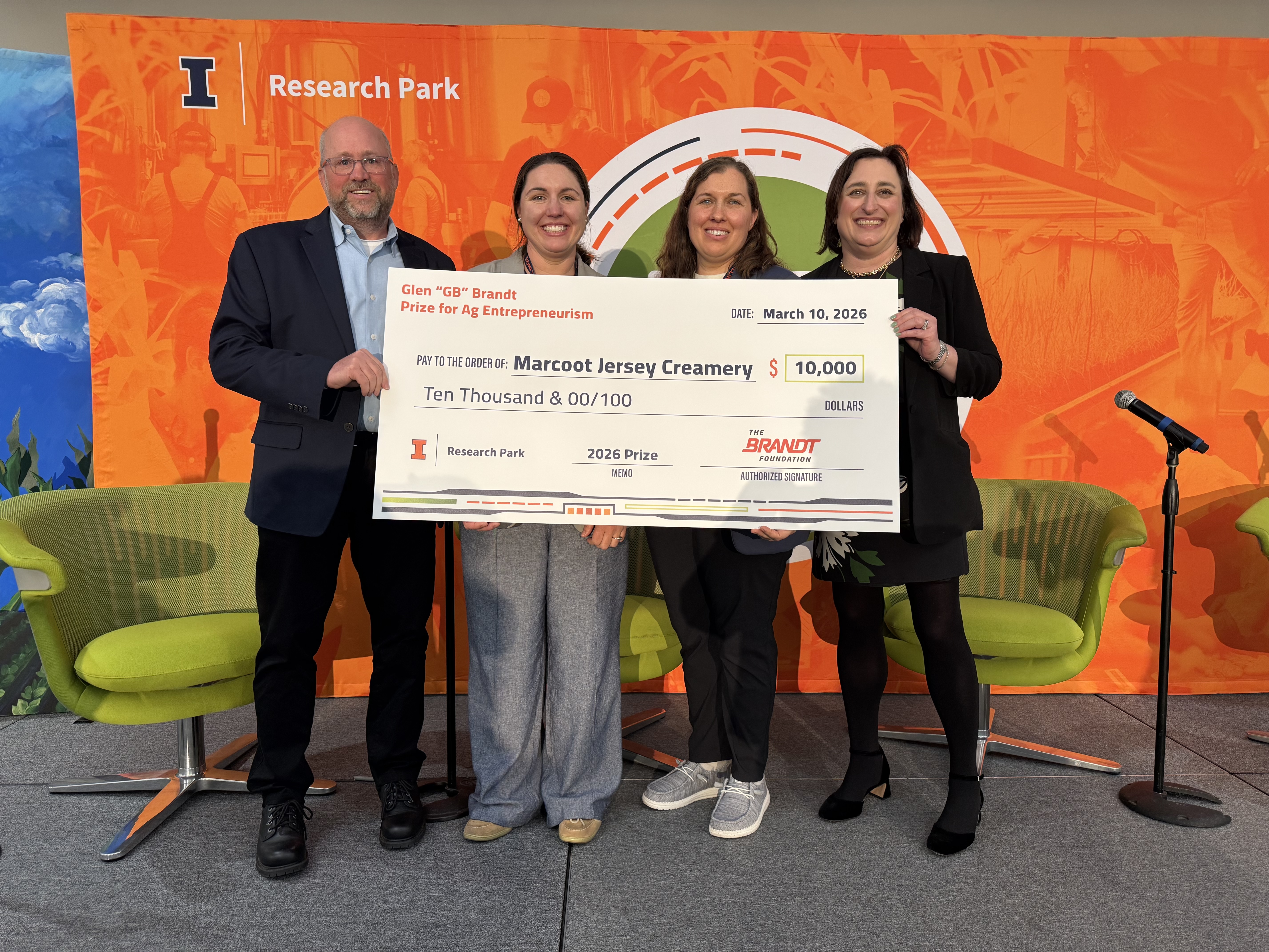 Amy and Beth Marcoot, owners of Greenville-based Marcoot Jersey Creamery, accepted the honor during a ceremony at the 2026 AgTech Summit hosted by the University of Illinois Research Park. The prize honors a grower/producer/farmer who exemplifies an entrepreneurial spirit and advances innovation through their business practices.