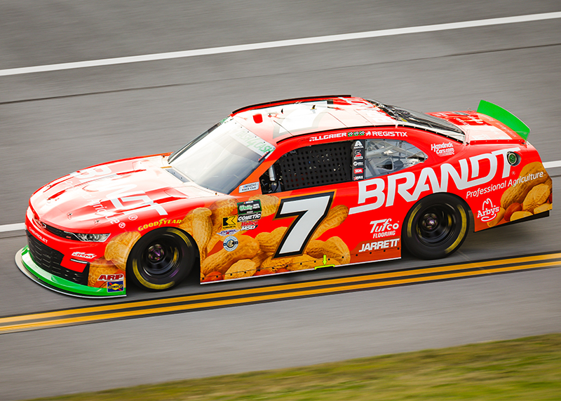 Justin Allgaier, driver of the No. 7 BRANDT Professional Agriculture Chevrolet, ran upfront for much of Saturday afternoon's NASCAR O'Reilly Auto Parts Series event at Talladega Superspeedway...