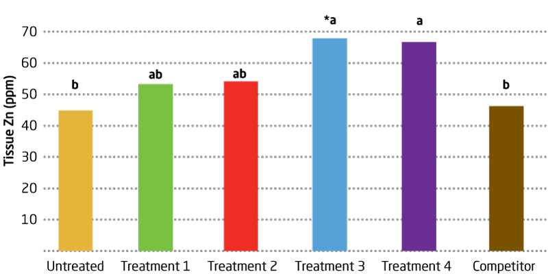 - A significant increase in tissue zinc (Zn) levels for turfgrass treated with the GRIGG/BRANDT rotational programs (treatments 3 and 4) were reported during salinity stress (Figure 3)